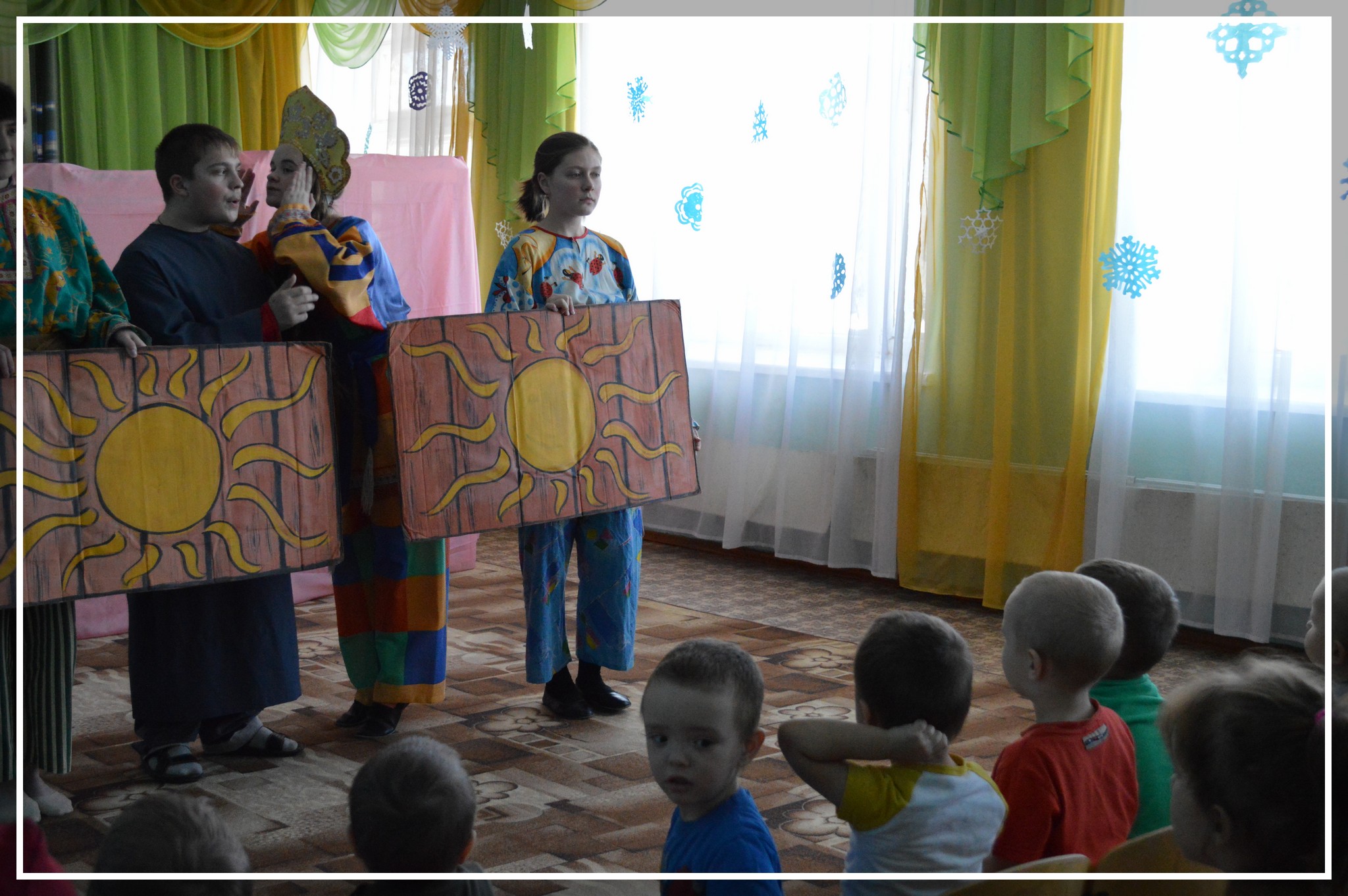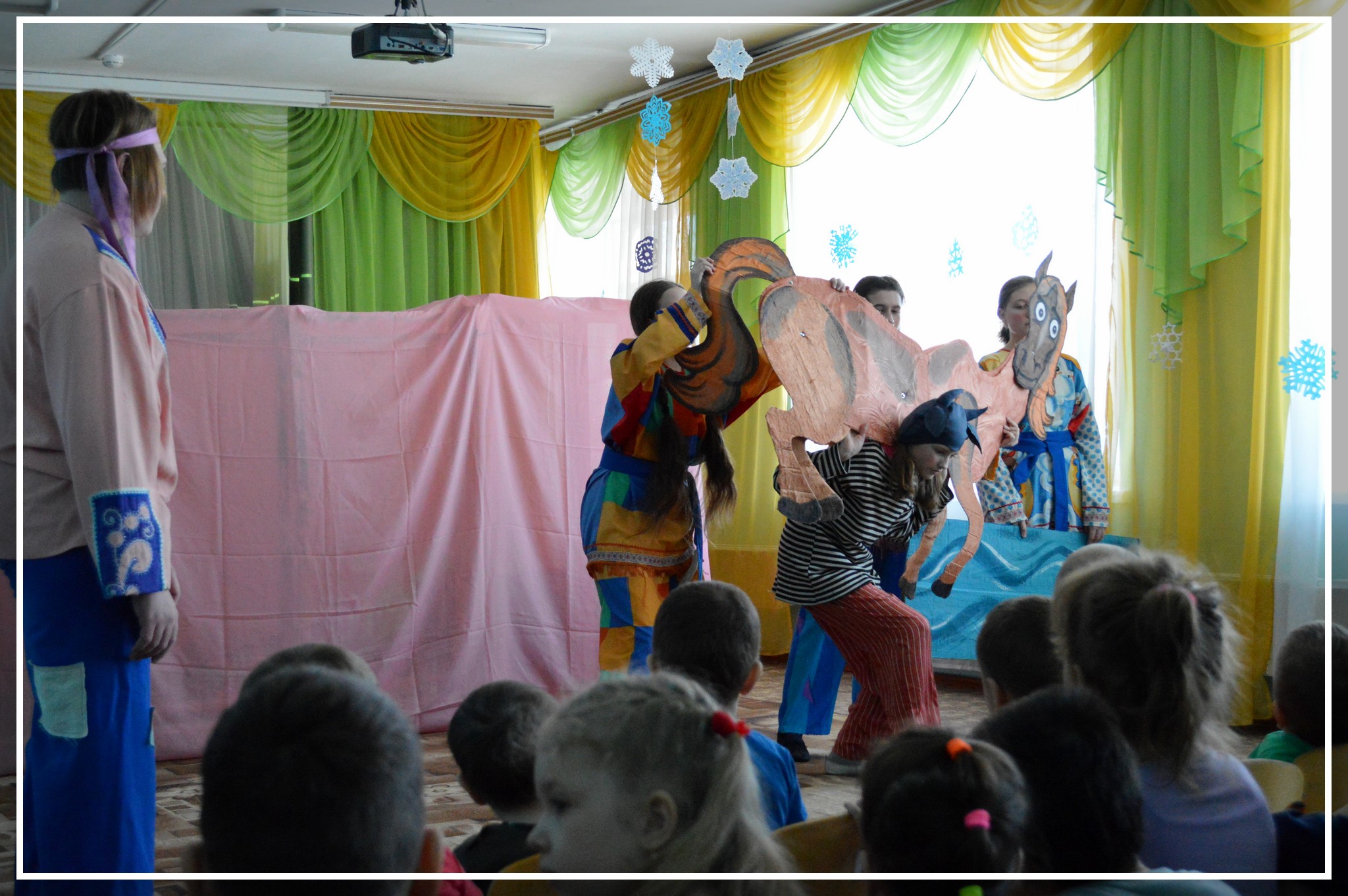 31 января в детском саду «Аленький цветочек» было не по-зимнему тепло и радостно. К детишкам в гости приехал театр. Образцовый драматический театр «Алые паруса» (руководитель С.Г. Калагирев) показал комическое представление «Сказка о попе и о работнике его Балде». Ребятам и воспитателям было необычно видеть спектакль в таком жанре. Но они живо реагировали на малейшие тонкости и перипетии сюжета, и остались очень довольны. «Спасибо за веселый спектакль. Приезжайте к нам еще!» — сказали они артистам после спектакля.